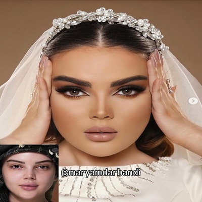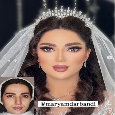 - میکاپ و گریم سینمایی عروس با مواد MAC و CLARINS
