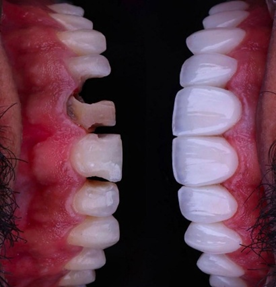 - طراحی لبخند شامل لیفت لثه، لمینت و کامپوزیت ونیر.