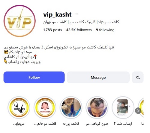 - کلینیک کاشت مو وی آی پی (خیابان آیتالله کاشانی)