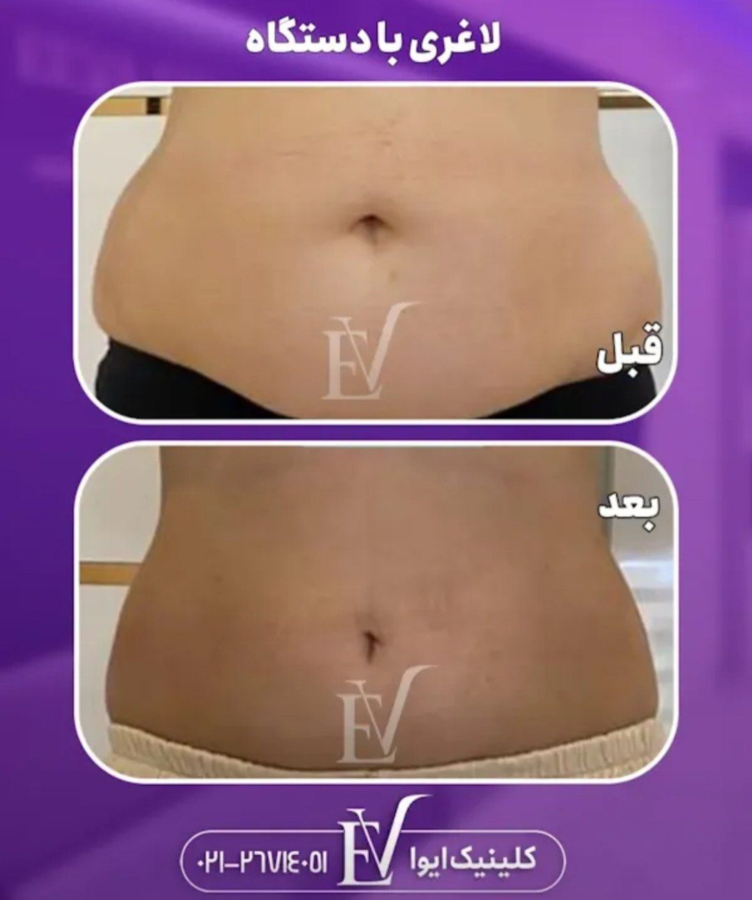 - استفاده از دستگاههای لاغری پیشرفته (استفاده از کرایولیپولیز، کویتیشن، آر اف (RF) و الکترولیپولیز برای کمک به کاهش چربیهای موضعی و بهبود فرم بدن)